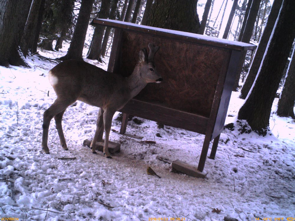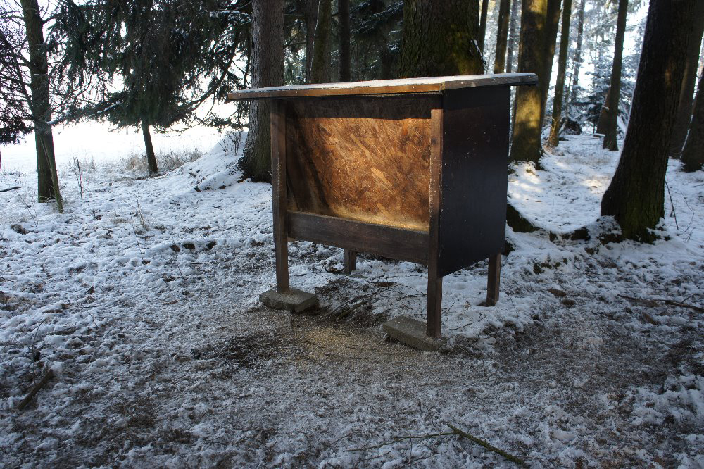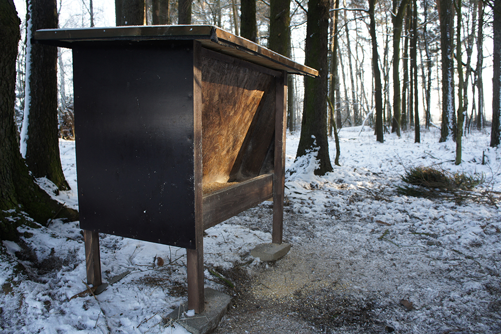 Krmící zařízení umisťujeme na závětrném a osluněném místě. Současně zde musí mít zvěř nedaleko vhodné prostory na ukrytí a odpočinek.